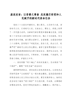 座谈发言:以吾辈之青春忠实履行好党和人民赋予的新时代使命任务.docx