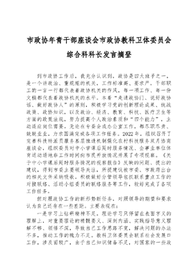 市政协年青干部座谈会市政协教科卫体委员会综合科科长发言摘登.docx