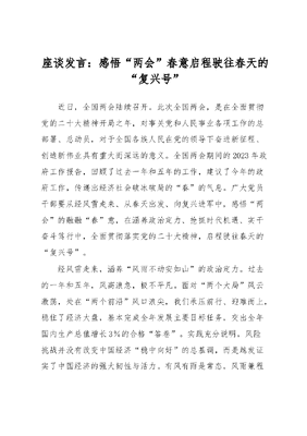 座谈发言:感悟“两会”春意启程驶往春天的“复兴号”.docx