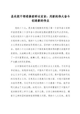 县处级干部进修班研讨发言:用新的伟大奋斗创造新的伟业.docx