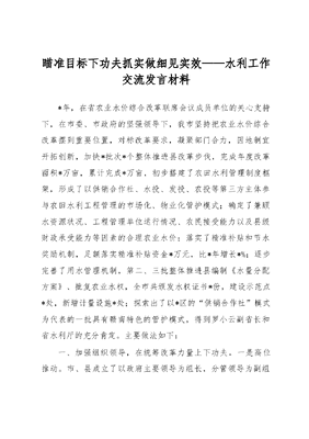 瞄准目标下功夫抓实做细见实效——水利工作交流发言材料.docx