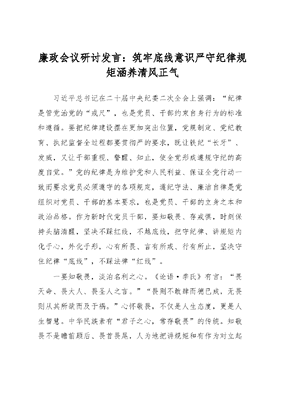 廉政会议研讨发言:筑牢底线意识 严守纪律规矩 涵养清风正气.docx