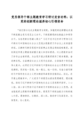 党员领导干部主题教育学习研讨发言材料:以党的创新理论滋养初心引领使命.docx