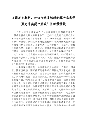 交流发言材料:加快打造县域新能源产业集群 聚力为实现“双碳”目标做贡献.docx