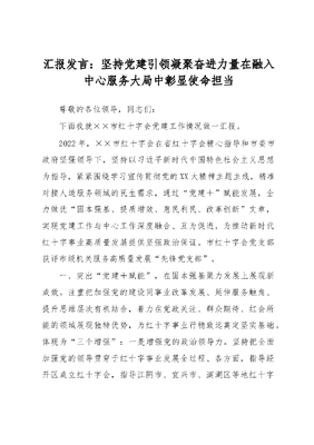 汇报发言:坚持党建引领凝聚奋进力量在融入中心服务大局中彰显使命担当.docx