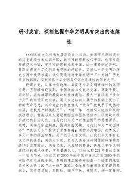 研讨发言:深刻把握中华文明具有突出的连续性.docx
