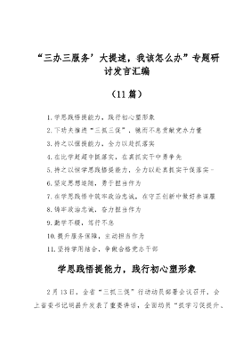 (11篇)“三办三服务’大提速,我该怎么办”专题研讨发言汇编.docx