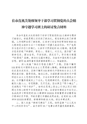 在市直机关处级领导干部学习贯彻党的大会精神专题学习班上的研讨发言材料.docx