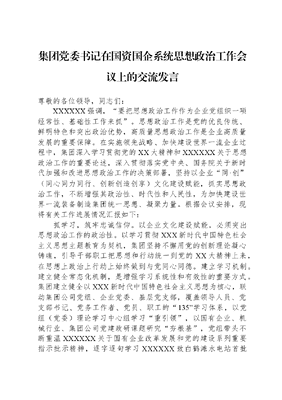 集团党委书记在国资国企系统思想政治工作会议上的交流发言.docx