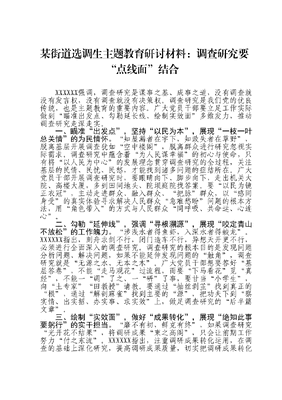 某街道选调生主题教育研讨材料:调查研究要“点线面”结合.doc