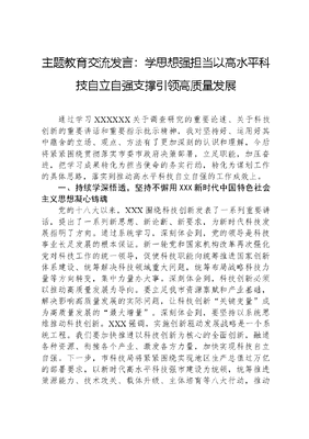 主题教育交流发言:学思想强担当,以高水平科技自立自强支撑引领高质量发展.docx