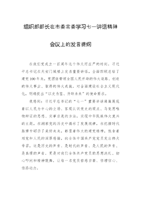组织部部长在市委常委学习七一讲话精神会议上的发言提纲.docx