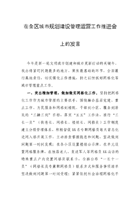 在全区城市规划建设管理运营工作推进会上的发言.docx