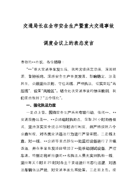 交通局长在全市安全生产暨重大交通事故调度会议上的表态发言.docx