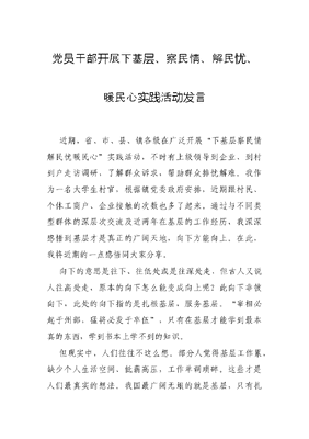 党员干部开展下基层、察民情、解民忧、暖民心实践活动发言.docx