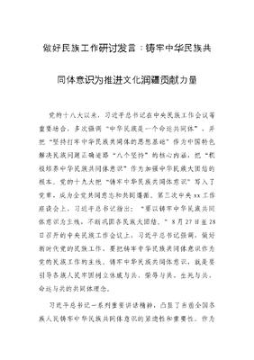 做好民族工作研讨发言:铸牢中华民族共同体意识为推进文化润疆贡献力量.docx