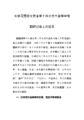 在学习贯彻甘肃省第十四次党代会精神专题研讨会上的发言.docx