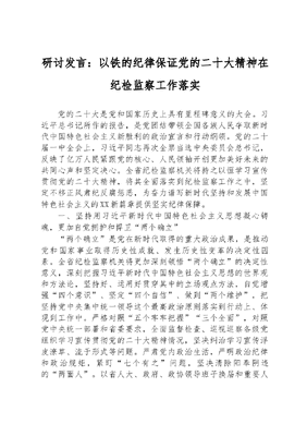 研讨发言:以铁的纪律保证党的二十大精神在纪检监察工作落实.docx