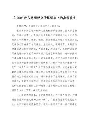 在2023年入党积极分子培训班上的典型发言(1).docx