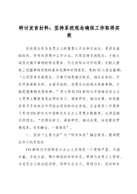 研讨发言材料:坚持系统观念 确保工作取得实效.docx
