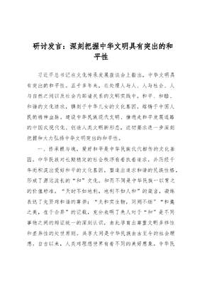 研讨发言:深刻把握中华文明具有突出的和平性.docx