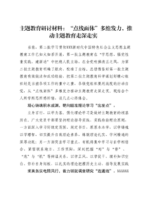 主题教育研讨材料:“点线面体”多维发力,推动主题教育走深走实.docx