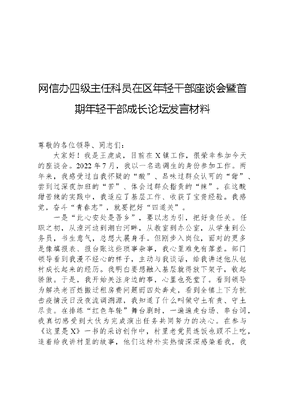 网信办四级主任科员在区年轻干部座谈会暨首期年轻干部成长论坛发言材料.docx