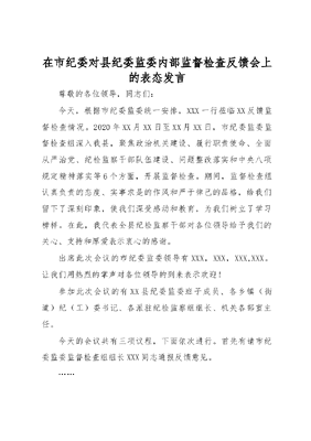 在市纪委对县纪委监委内部监督检查反馈会上的表态发言.docx