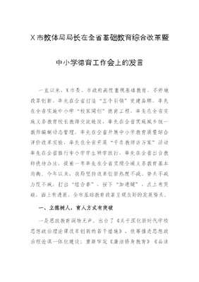 X市教体局局长在全省基础教育综合改革暨中小学德育工作会上的发言.docx