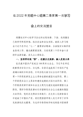 在2022年党组中心组第二季度第一次学习会上的交流发言.docx