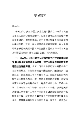 学习习近平在庆祝中国共产主义青年团成立100周年大会上的讲话发言.docx