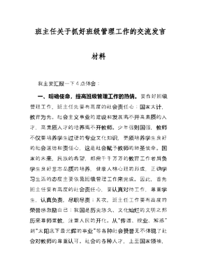 班主任关于抓好班级管理工作的交流发言材料.docx