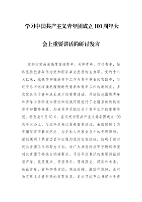 学习中国共产主义青年团成立100周年大会上讲话研讨发言.docx