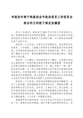 市政协年青干部座谈会市政协委员工作委员会综合科正科级干部发言摘登.docx