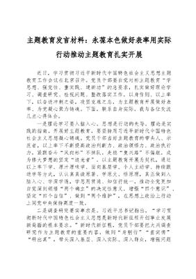 主题教育发言材料:永葆本色做好表率+用实际行动推动主题教育扎实开展.docx