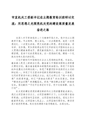 市直机关工委副书记在主题教育轮训班研讨交流:用思想之光照亮机关党的建设高质量发展奋进之路.docx