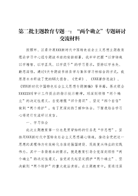 第二批主题教育专题一:“两个确立”专题研讨交流材料 (2).docx
