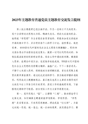2023年主题教育普通党员主题教育交流发言提纲.docx