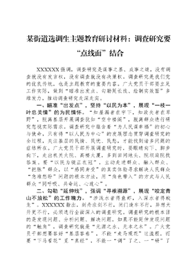 某街道选调生主题教育研讨材料:调查研究要“点线面”结合.docx