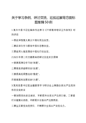 关于学习条例、研讨交流、巡视巡察等方面标题集锦50例.docx