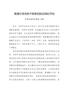 党纪学习教育∣学习交流:教育引导党员干部学纪知纪明纪守纪(中央纪委国家监委 李鹃).docx