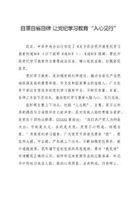 党纪学习教育∣学习交流:自重自省自律 让党纪学习教育入心见行.docx