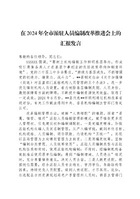 在2024年全市派驻人员编制改革推进会上的汇报发言.docx