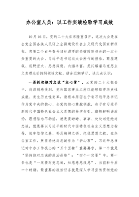 办公室人员:以工作实绩检验学习成效(二十大体会).docx