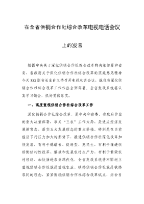 在全省供销合作社综合改革电视电话会议上的发言.docx