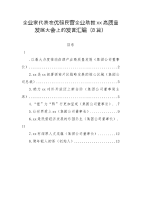 (8篇)企业家代表在优强民营企业助推xx高质量发展大会上的发言汇编.docx