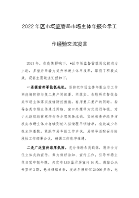 2022年区市场监管局市场主体年报公示工作经验交流发言.docx