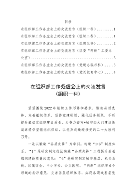 (6篇)在组织部工作务虚会上的交流发言.docx