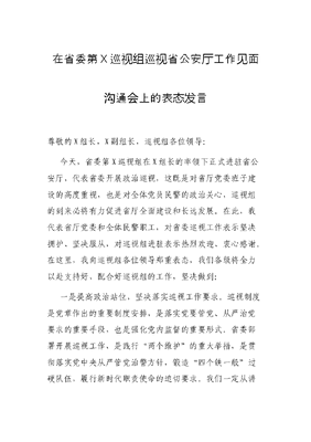 在省委第X巡视组巡视省公安厅工作见面沟通会上的表态发言.docx