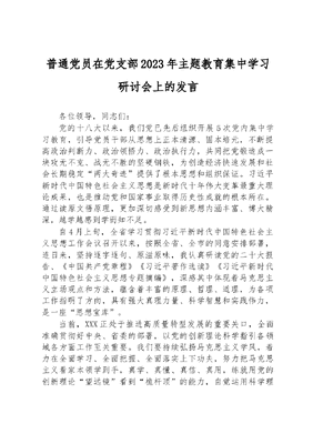 普通党员在党支部2023年主题教育集中学习研讨会上的发言.docx
